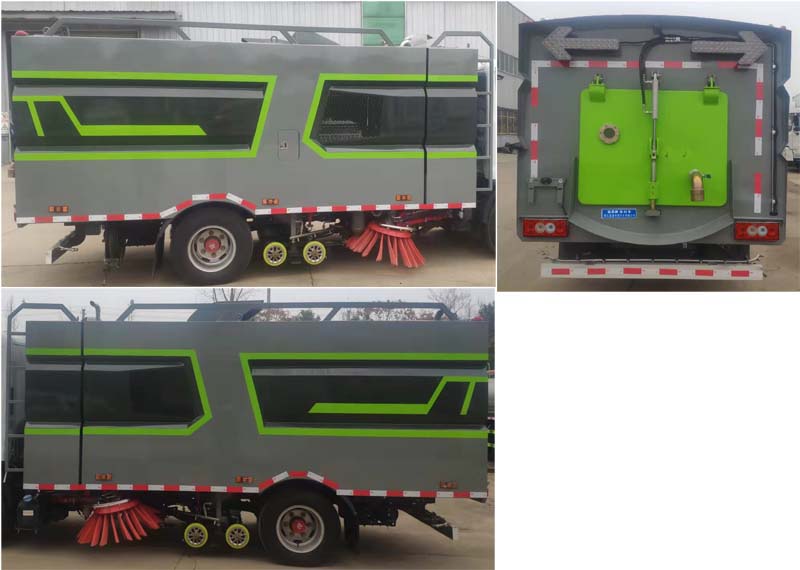 該車主要作用于路面的清掃作業(yè);專用裝置為洗掃裝置、垃圾箱。隨底盤選裝駕駛室;側(cè)防護為專用裝置代替,后防護材料為:Q235碳鋼,連接方式為:螺栓連接,后部防護截面尺寸(mm):120×50,后部防護離地高度(mm):350;ABS系統(tǒng)控制器型號為CM4XL-4S/4M,ABS系統(tǒng)控制器生產(chǎn)企業(yè)為廣州瑞立科密汽車電子股份有限公司.選裝左右及后部樣式。 |