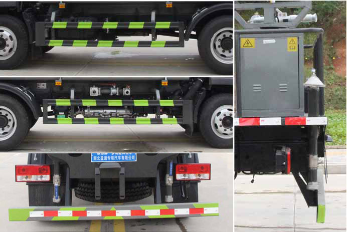 該車用途為抑塵降霾.主要裝置為罐體及噴霧裝置;罐體總?cè)萘?/span>:8.4立方米;罐體有效容積:8立方米;罐體外形尺寸(長×長軸×短軸)(mm):4000×2100×1400.側(cè)、后防護材料均為:Q235碳鋼,連接方式均采用螺栓連接,后部防護截面尺寸(mm):120×50,后部防護離地高度(mm):450.ABS系統(tǒng)控制器型號:CM4XL-4S/4M,ABS系統(tǒng)控制器生產(chǎn)企業(yè):廣州瑞立科密汽車電子股份有限公司.選裝前部電子炮樣式,選裝前部不帶電子水炮;當(dāng)前部帶電子水炮時,車長為7950mm,前伸為500mm;當(dāng)前部不帶電子水炮時,車長為7450mm,前伸為0mm.選裝噴霧裝置樣式,選裝罐體頂部高位花灑裝置,選裝大工作平臺,選裝車輛前部鴨嘴裝置,選裝自動球閥安裝位置,選裝箭頭燈裝置,選裝罐體頂部方形罐口及罐口位置,選裝尾部自流口裝置,后部作業(yè)燈僅在作業(yè)時開啟,車輛行駛過程中不可開啟. |
