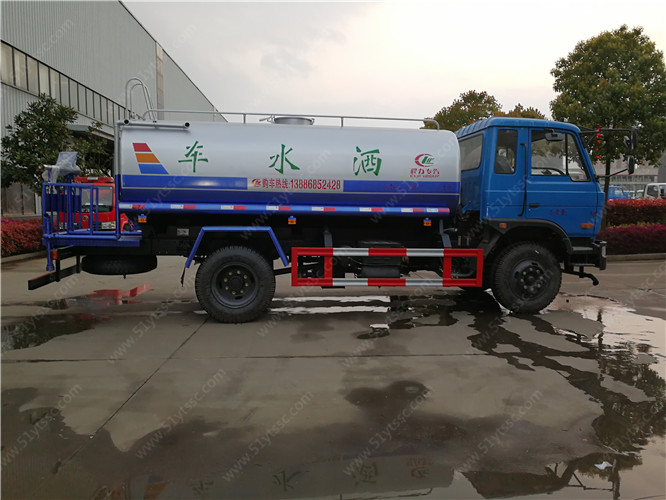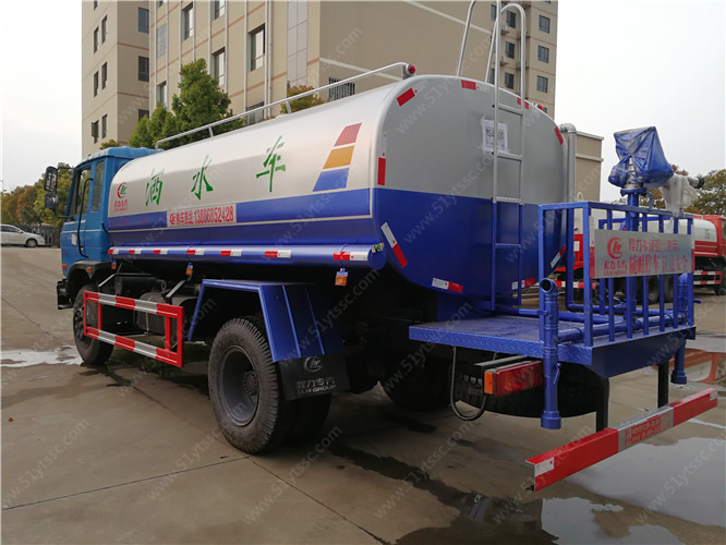 10噸灑水車(裝載10噸):玉柴160馬力,6擋變速箱,軸距3950mm,250大梁,900-20尼龍胎。中型灑水,運水專用汽車,動力強勁,質量扎實。該車系為廣泛應用的主流灑水車系列。包含產品包括:多利卡灑水車,尖頭灑水車,平頭灑水車等產品。該車帶國家免征公告。管道系統:由管道、四位三通球閥、直通球閥、過濾網、出水口(前沖后灑、側噴;高位側花灑;后工作平臺,帶綠化灑水高炮)組成。