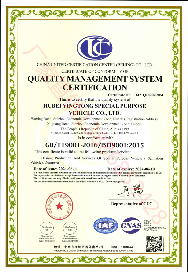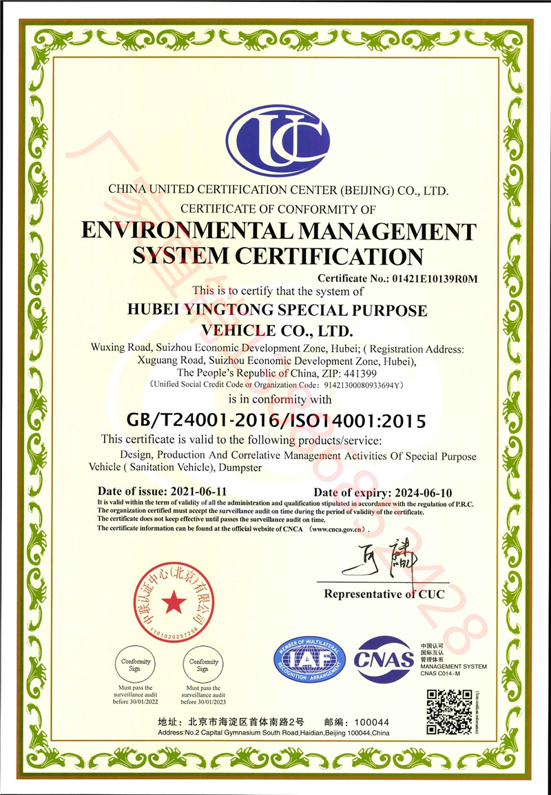 湖北盈通專用汽車有限公司愿竭誠為您服務,并期待您來我廠實地考察生產實力及產品工藝,我們為您提供最優質的服務。 程力汽車集團位于中國專用汽車之都—湖北省隨州市。在隨州市曾都區南郊,曾都經濟技術開發區、武漢等地均有生產制造基地。   湖北盈通專用汽車有限公司 3C認證