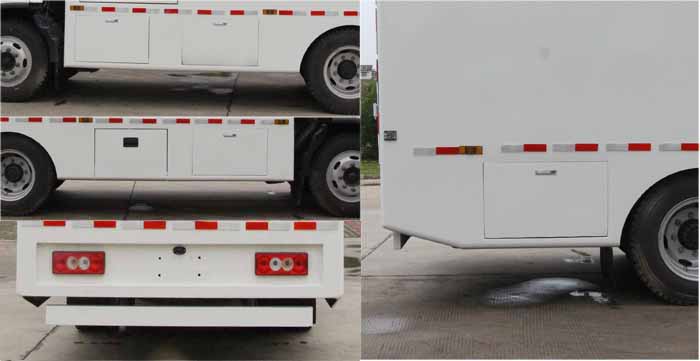 樹枝粉碎車|物料粉碎車|綠籬修剪車|園林樹枝粉碎車|干濕樹枝粉碎收集車,該車裝有垃圾箱、破碎裝置、電氣及液壓系統(tǒng),工作原理是通過粉碎裝置將物料粉碎.ABS系統(tǒng)控制器型號/生產(chǎn)企業(yè):ABS-E/威伯科汽車控制系統(tǒng)(中國)有限公司,ABS-VI·E/廣州瑞立科密汽車電子股份有限公司;側(cè)防護由車身結(jié)構(gòu)代替,后防護材料Q235碳鋼,連接方式為螺栓連接,后防護截面尺寸(寬×高)(mm)50×120,后部防護離地高度(mm):400.僅采用底盤3800mm軸距改裝. |