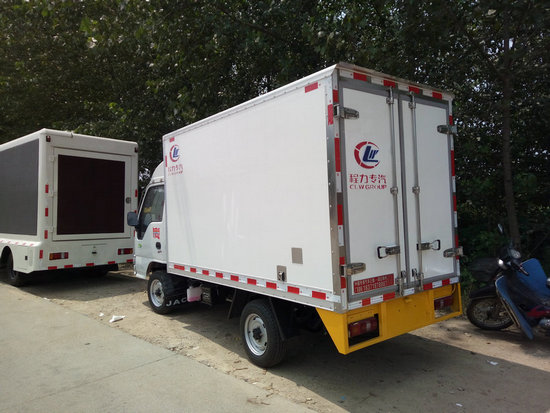 冷藏車廂體:采用國標A級聚氨酯保溫材料,厚度為8厘米,廂體內外采用玻璃鋼材質全包裹。不銹鋼鎖件。包角、包邊鋁合金型材。底盤采用高強度花紋鋁板定制。可選裝肉鉤導軌,和底部通風槽