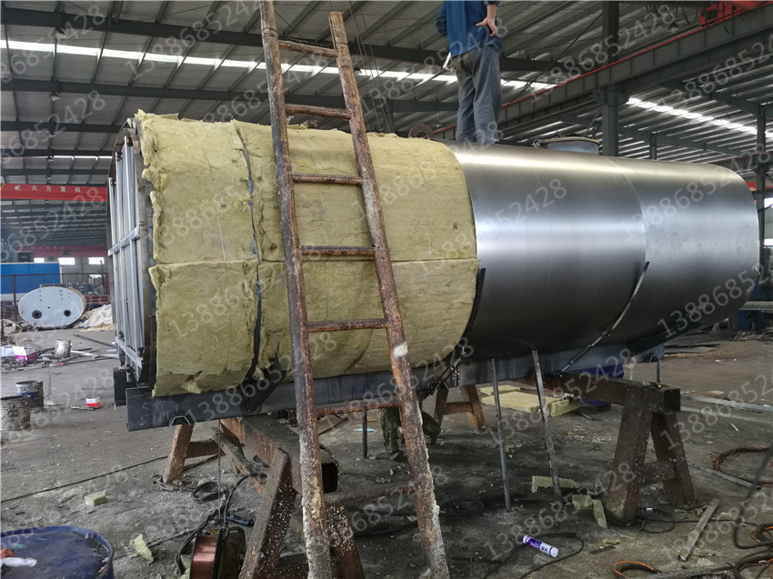 3. 保層溫的制作是在水罐外部另外焊接10mm厚的支撐骨架,然后用保溫材料將骨架內部填充滿,**在骨架外蒙上一層外皮。 保溫層外表鐵皮采用8mm厚高強度耐磨板,可選擇使用不銹鋼分鏡面8K或磨砂板